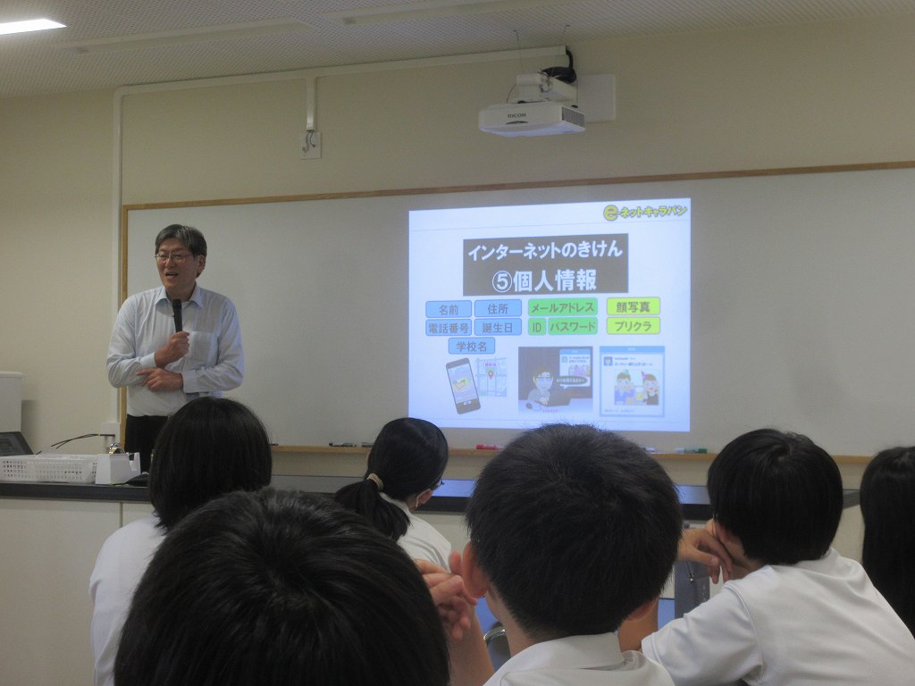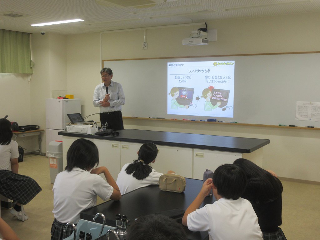 日常的に使用しているスマートフォンやタブレットに潜む危険性や犯罪についての話もあり、真剣な表情で聞いていました。