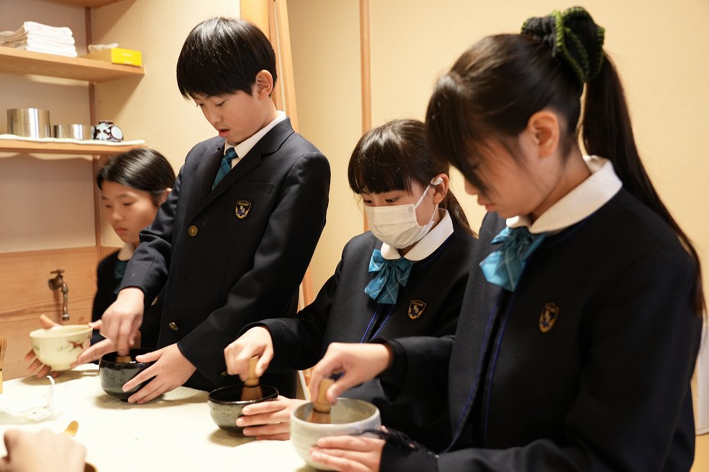 本日5年生は、片山学園中学校で茶道体験と理科実験の2つの体験をしてきました。