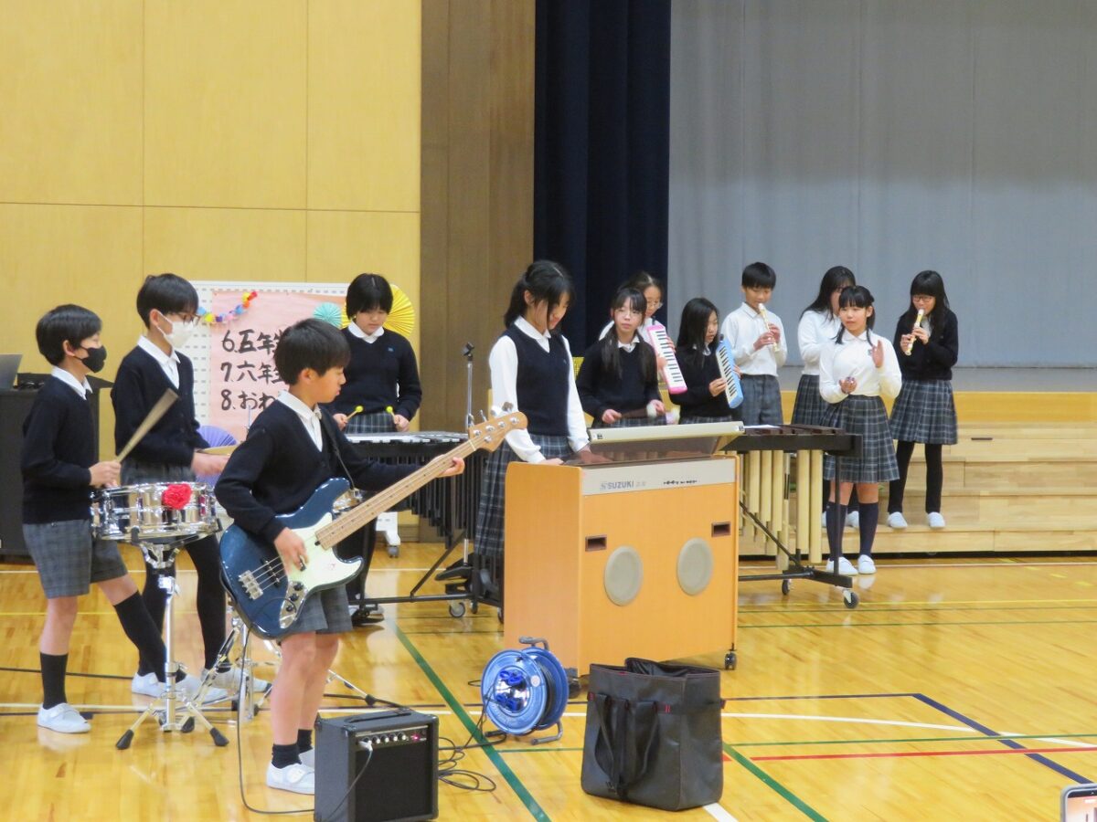 1年生から5年生まで、それぞれの学年が、一生懸命練習した歌や合奏、寸劇などを披露し、6年生に感謝の想いを伝えました。