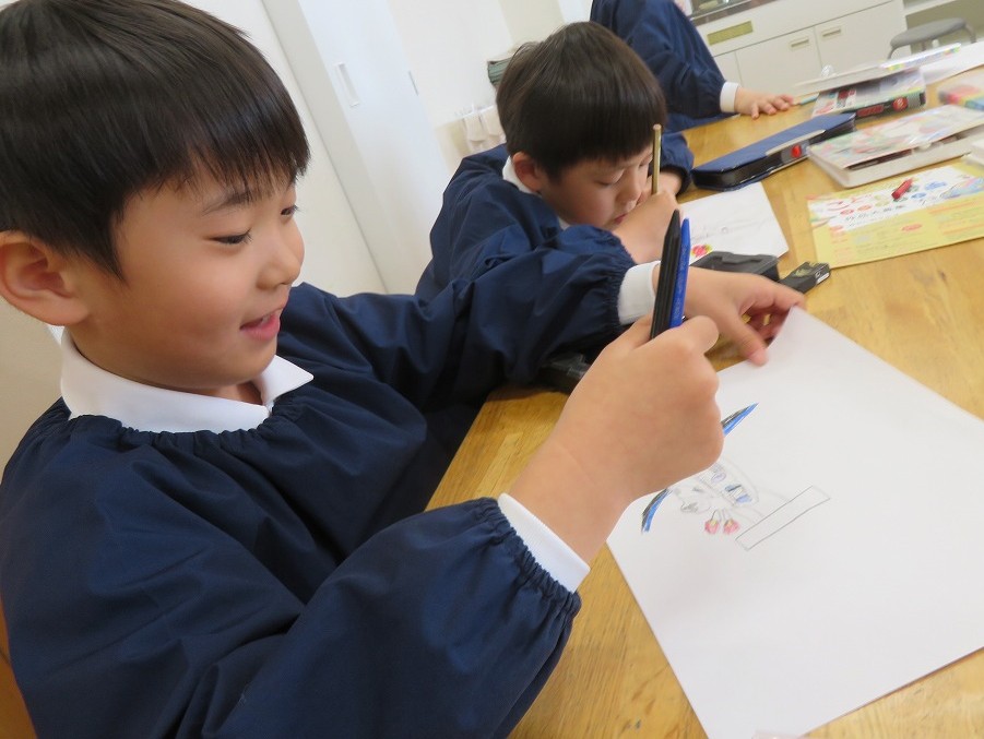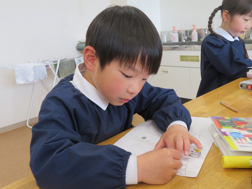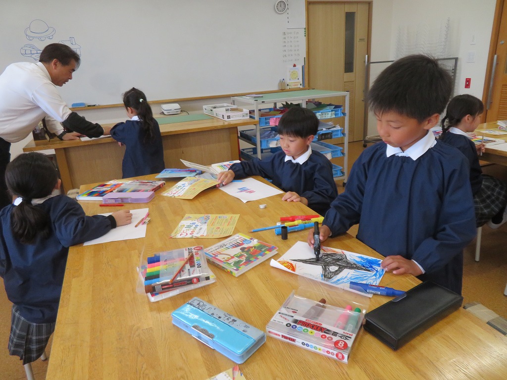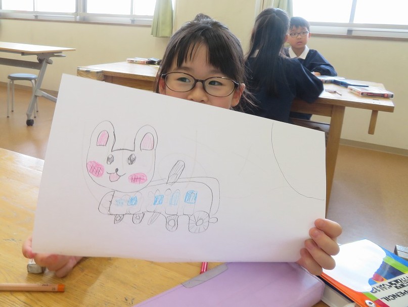 今週の2年生の図工では、「みらいのクルマ」をテーマに画用紙いっぱいに夢を広げました。