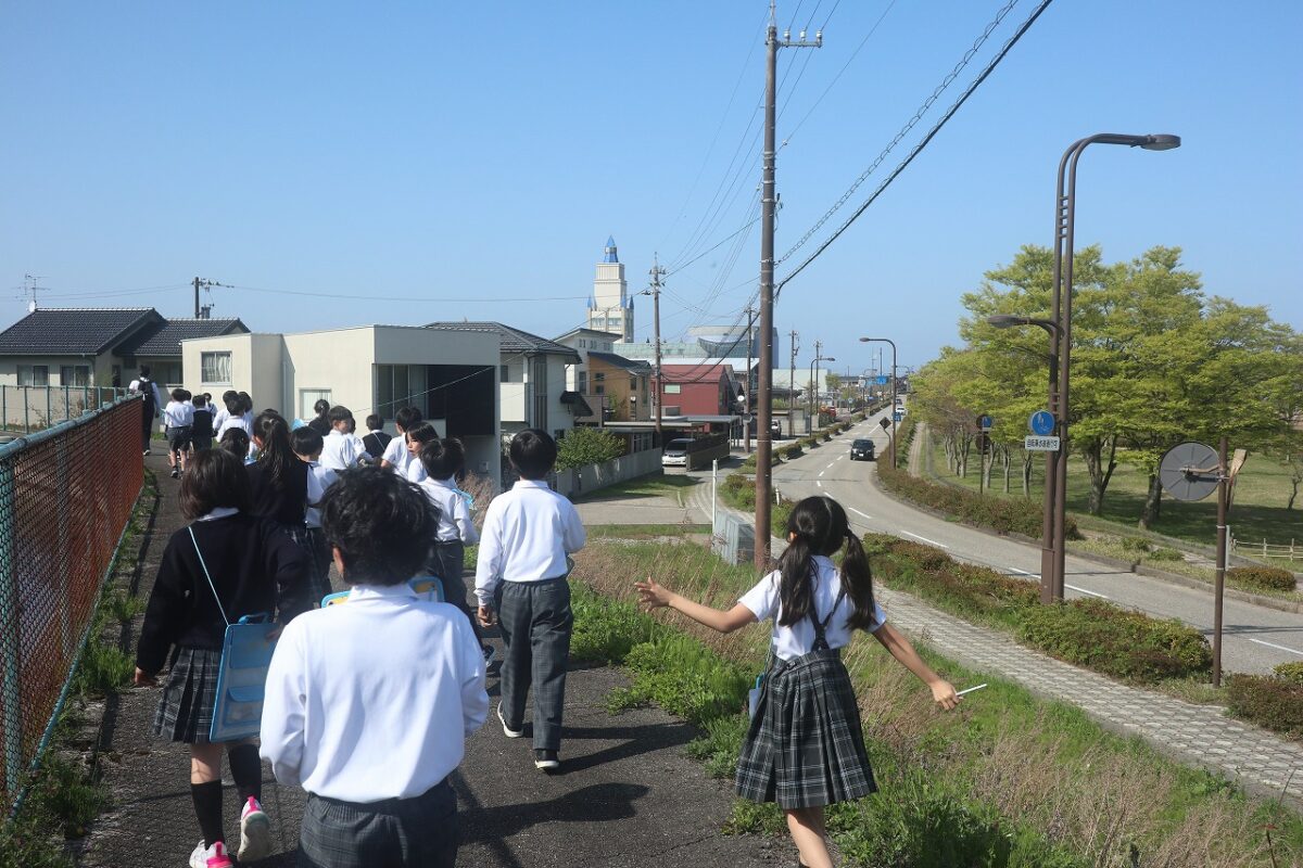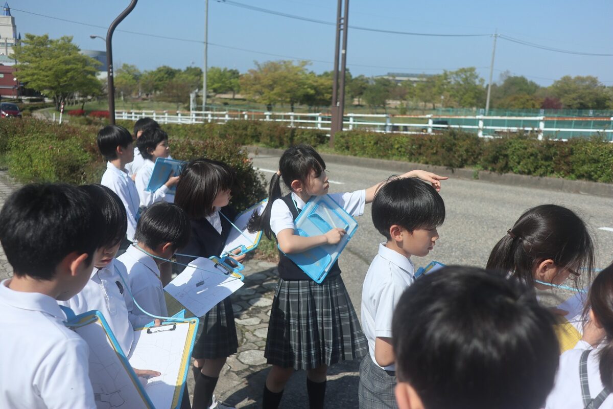 本日、社会科の学習で学校の周りを探検しました。