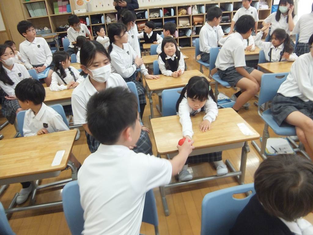 6年生が1年生の教室を訪れ,「声のものさし」についての授業を行いました。
